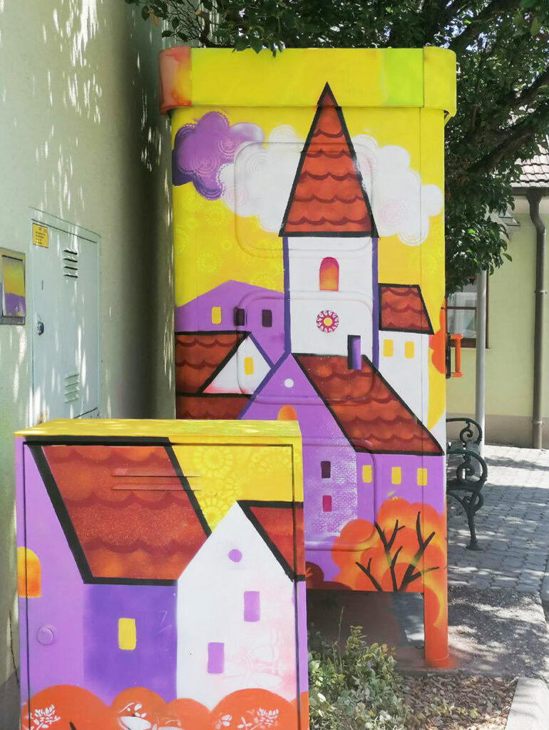 Im Rahmen des Projekts wurden stillgelegte Telefonzellen in den Kreuttaler Dörfern von den ukrainischen Künstlerinnen Mariya Chorna und Inna Filarova unter der Leitung von Kunsthaus-Direktorin Inna Pavlecka-Tumarkin mit Sprühfarbe künstlerisch dekoriert.
